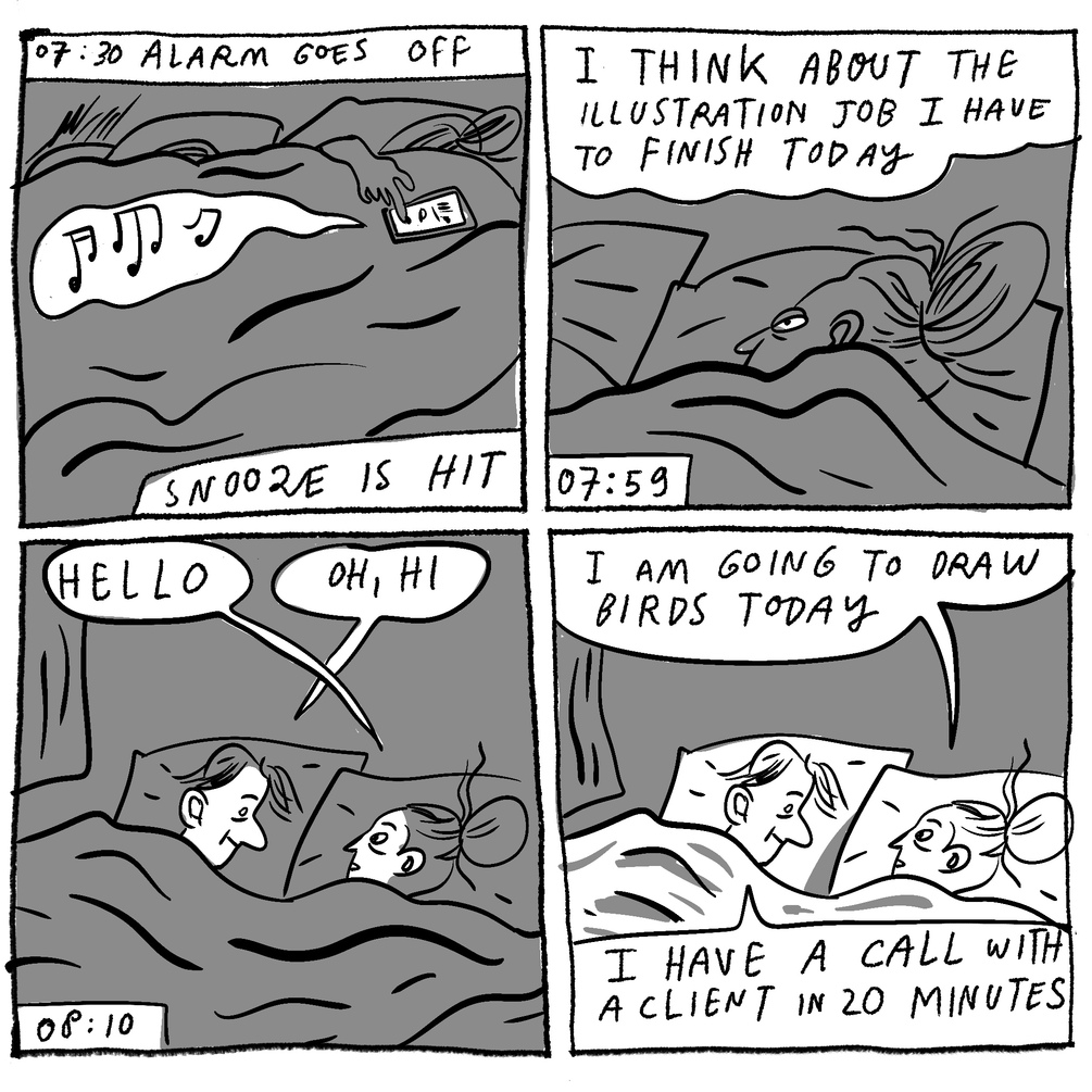 This digital comic book consists of 6 edition of hourly comic day! (and one special pandemic-edition). I think most of my work is about the strangeness of the mundane, and the other way around. In these comics you see the main character (who is also the artist) live her live, maybe change a little among the way, or maybe not. Anyway, there's some funny stuff in there, you can also see houses, boyfriends and seasons change!